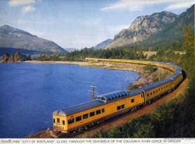 I can still recall arriving at the station in Portland with the head of this beautiful streamliner poised at the very edge of the street waiting to cross the Willamette via the Steel Bridge. The start would be so smooth you would not notice it unless you were looking outside and see the platform begin to edge backwards. My dad would walk along beside our window until he reached the end of the platform. I was always eager to see the yards after we crossed the bridge.
